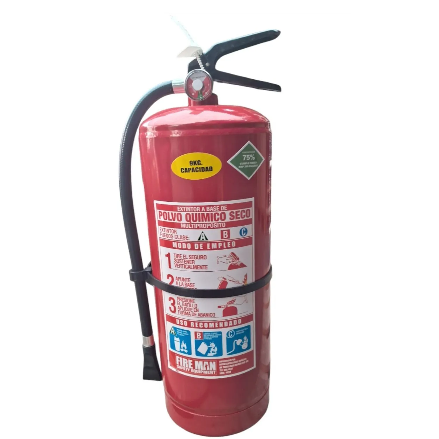 El Extintor PQS ABC 75% 9Kg de Fire Man Safety es la solución ideal para proteger tu hogar u oficina de incendios. Con una capacidad de 9 kg, este extintor multipropósito te brinda la seguridad que necesitas para combatir fuegos de clase A, B y C. Su diseño práctico y fácil de usar te permite reaccionar rápidamente ante cualquier emergencia.